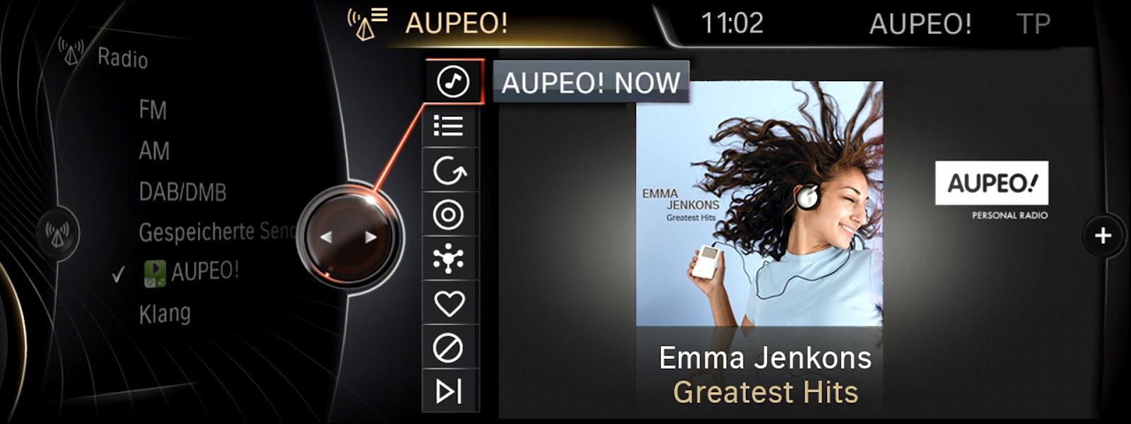 For the first time, FM radio programmes are accompanied by graphics in the central information display’s player screen, just like digital radio. Where
